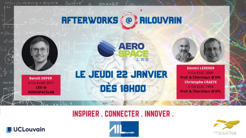 Les Afterworks @ AILouvain sont un nouveau cycle d’événements imaginés par l’AILouvain en collaboration avec l’Administration de la Recherche de l’UCLouvain et le Parc Scientifique de Louvain-la-Neuve. Leur objectif ? Renforcer les liens et les synergies entre le monde académique, les entreprises et nos alumni ingénieurs.