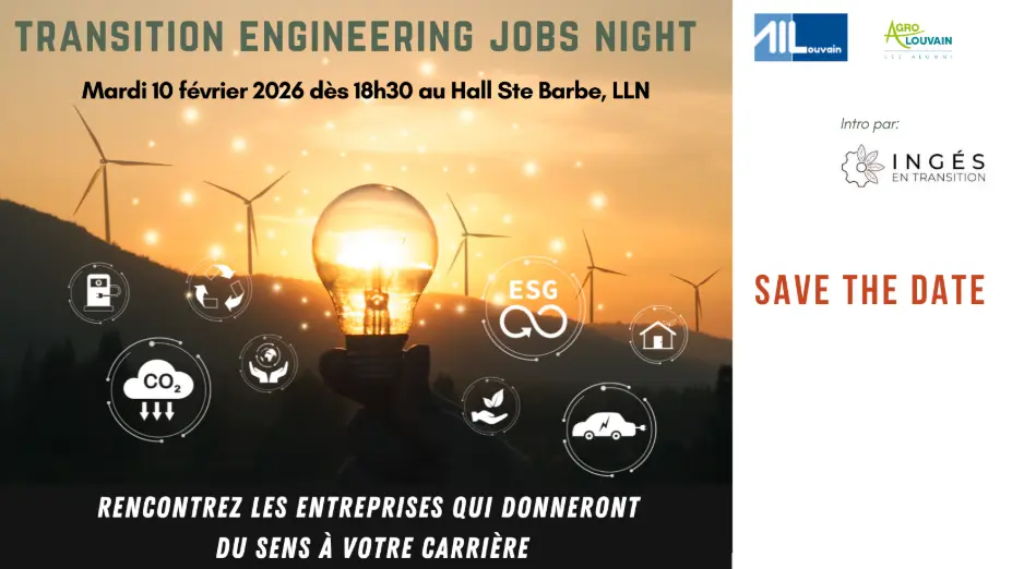 Où que vous en soyez dans votre carrière, au tout début ou à un tournant, la question du sens et de l'impact dans le métier d'ingénieur est de nos jours de plus en plus cruciale. Beaucoup d'étudiants et d'alumni se questionnent sur le rôle positif que l'ingénieur ou l'informaticien peut jouer dans ce monde en transition et pas encore suffisamment de réponses apparaissent clairement chez les employeurs.